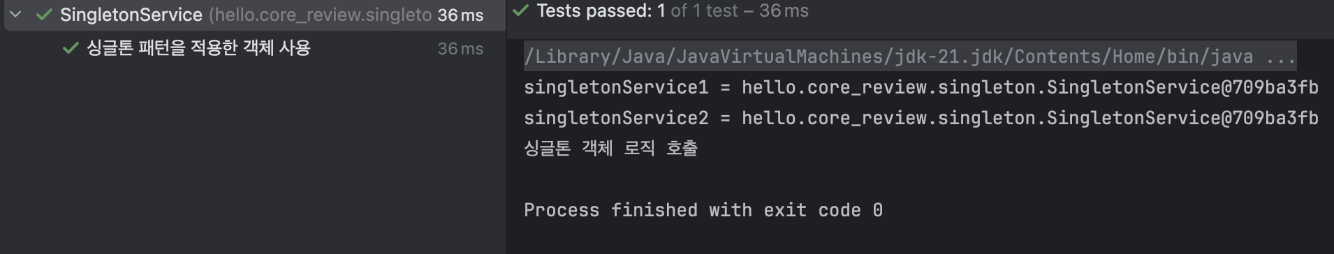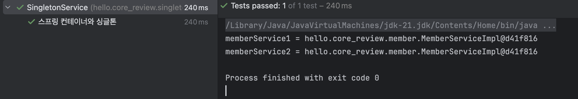 똑같은 참조값을 가지고 있으며 테스트 또한 성공한 것을 볼 수 있다.