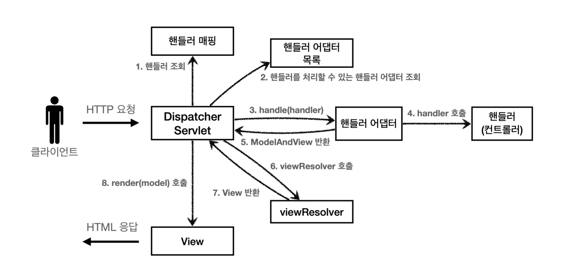 - 핸들러 실행 (핸들러 어댑터가 핸들러를 실행)