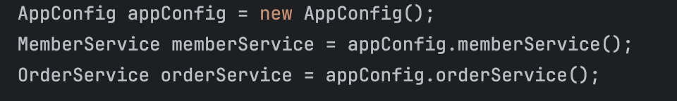 다시 말하지만 AppConfig는 애플리케이션 전체의 동작에서 생성될 구현 객체를 도맡아 생성해주고, 이를 다시 연결해주는 역할을 수행한다.