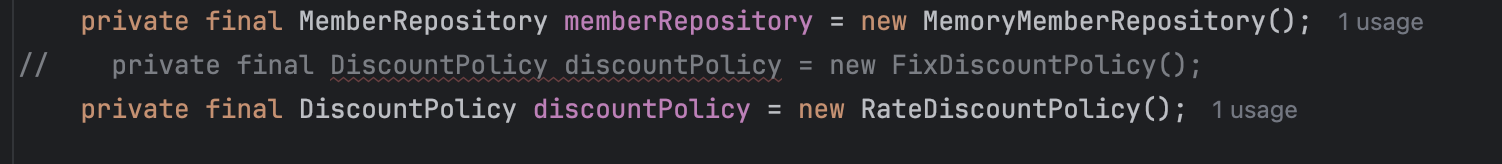 int discountPrice = discountPolicy.discount(member, itemPrice);